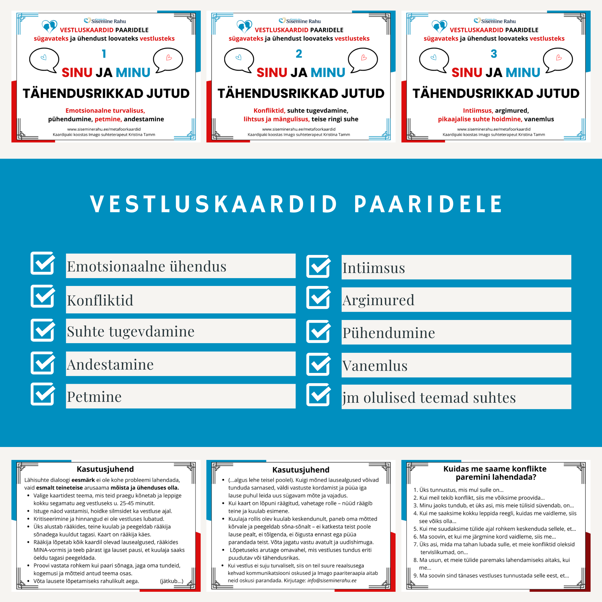 Pakk sisaldab mitmekihilisi vestlusteemasid nagu: