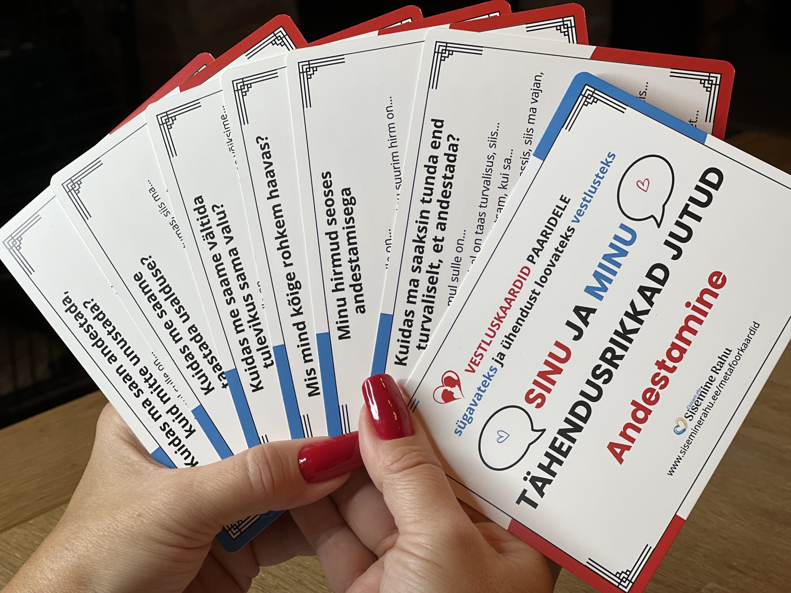 Vestluskaartidel olevad lausealgused suunavad vestlust samm-sammult sügavamaks, toetavad haavatavust ja aitavad rääkida ka nendest teemadest, mis muidu jäävad ütlemata.
